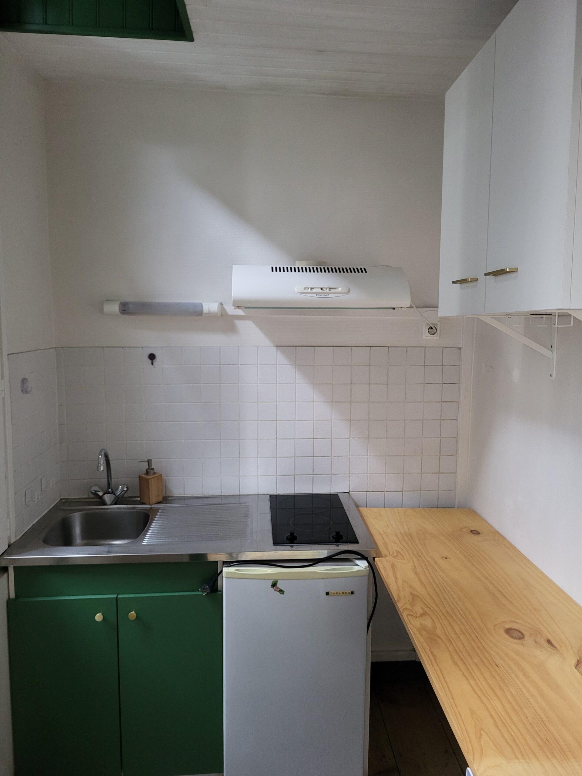 Entrée sur séjour/salon, partie cuisine aménagée, une chambre, une salle d’eau avec WC.