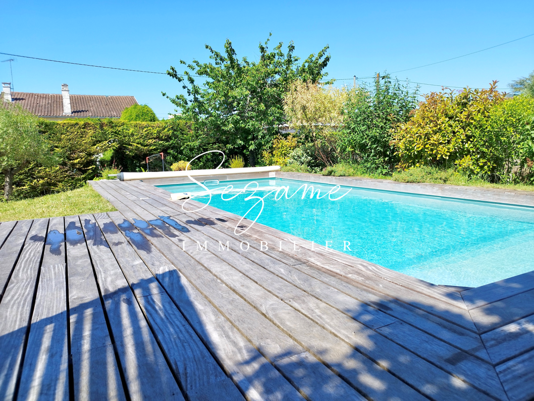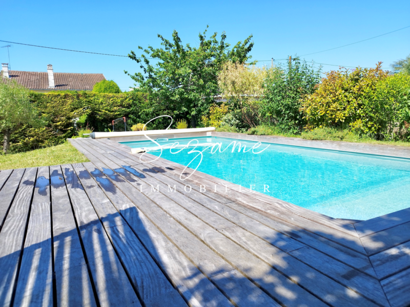 Piscine 9 x 4 automatique au sel, fond à 1.40 m, grande terrasse bois, deux garages indépendants (30 et 15 m²), parking pour plusieurs véhicules, grande terrasse avec partie couverte et barbecue (45 m²), grand jardin clos.