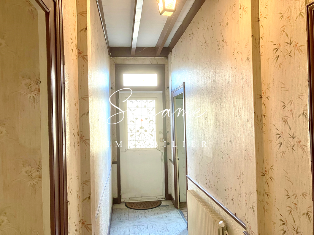 Grande Maison de ville F5 à rénover et offrant une surface habitable d’environ 120 m², érigée sur une parcelle de 258 m², dont une partie est couverte, abri ou agrandissement possible.