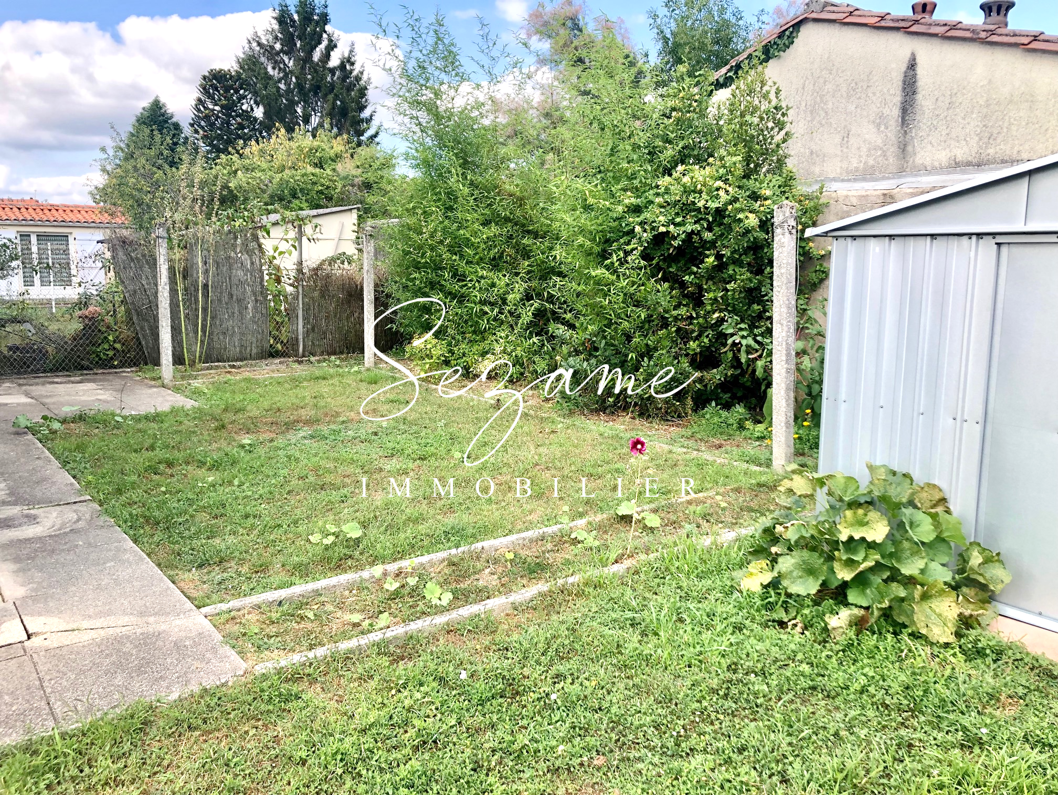 Jardin clos et terrasse. Un garage attenant et cabanon.