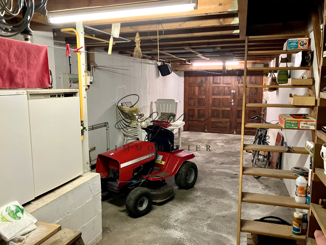 Garage attenant avec grenier (30 + 6.5 m²), cave (15 m²). Beaux volumes, belles possibilités d’aménagement.