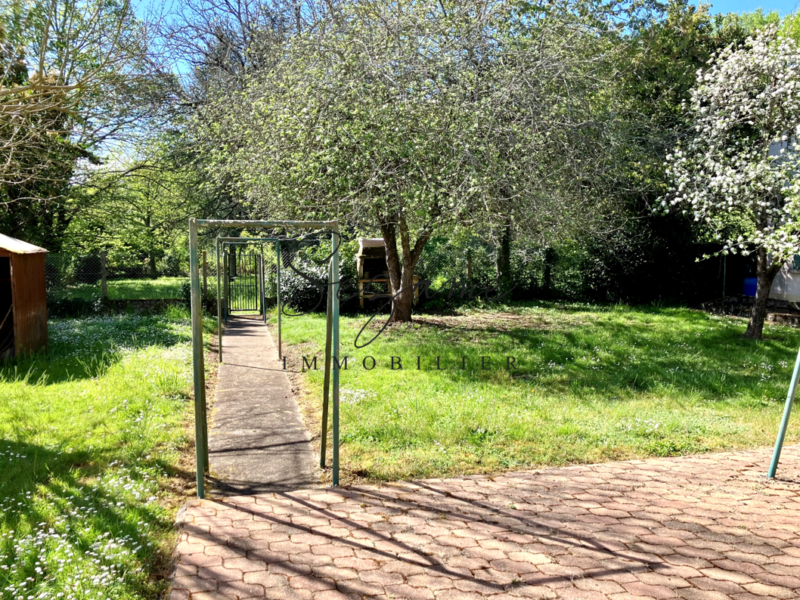Agréable et grande Maison F5 de 1950, indépendante, à rafraichir/rénover avec terrasse et Gd jardin clos, l’ensemble érigée sur une parcelle de 1871 m² dont la moitié est divisible/constructible, à proximité des commerces, dans un environnement très calme/boisé.